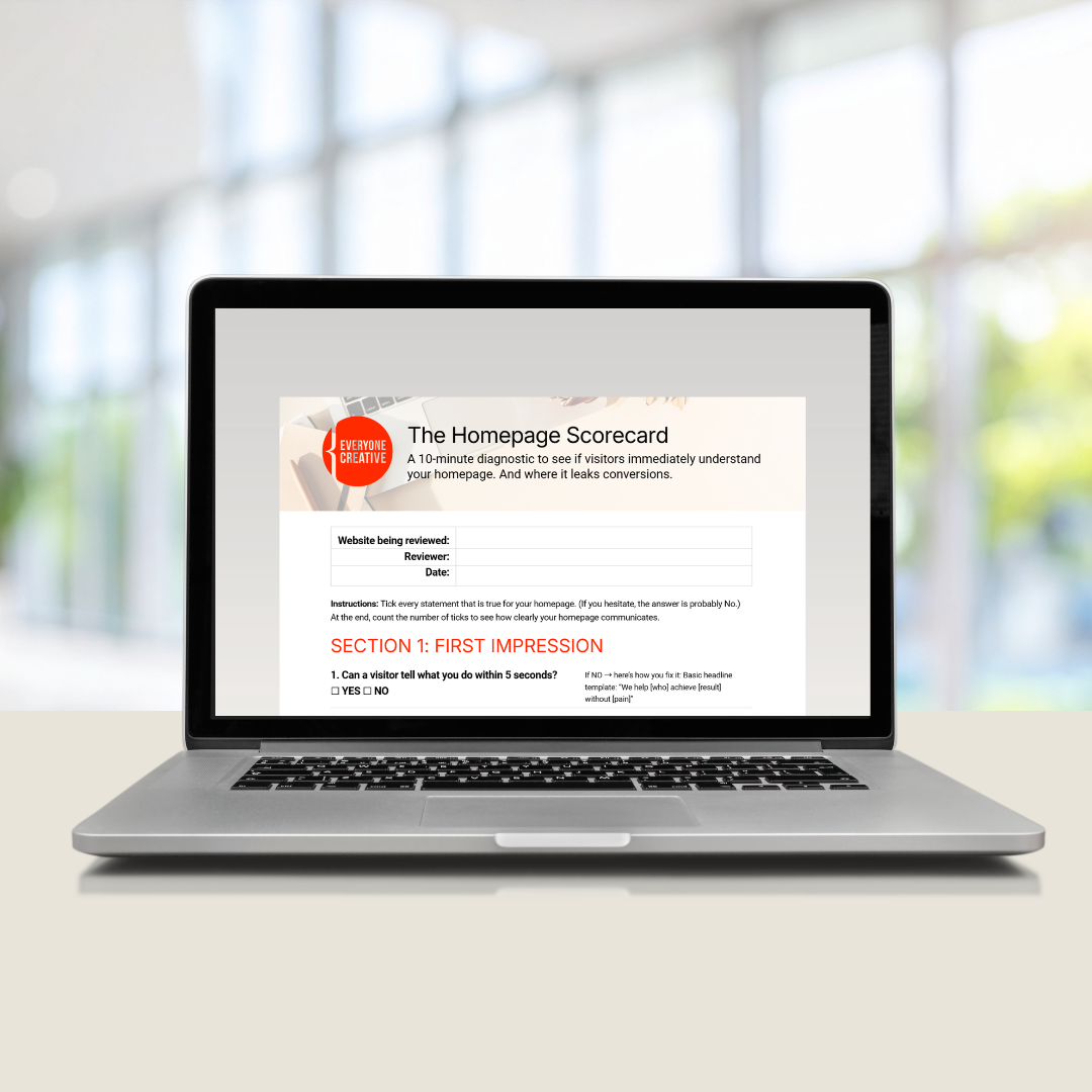 This 3-minute Homepage Clarity Scorecard shows you: